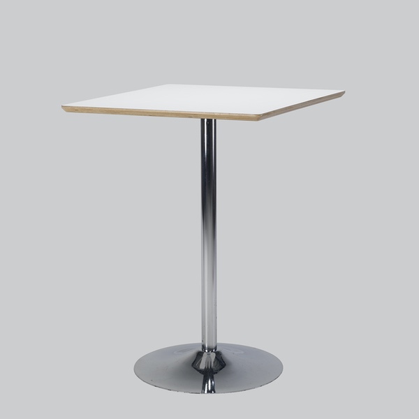 Poseur-table TROMPET chrome/white top 80×80 smooth edge